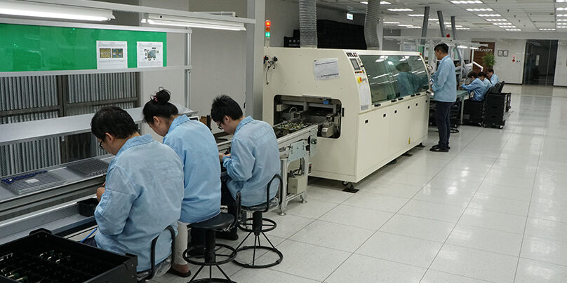 PCBA’s are kept in ESD safe boxes moving from process to process until they are safely packed for shipment.